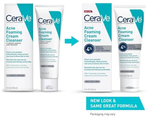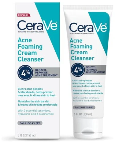 CeraVe Acne Foaming Cream Cleanser with 4% Benzoyl Peroxide, Hyaluronic Acid, and Niacinamide
