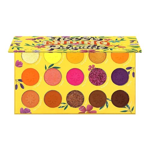 The Kara Beauty Never Ending Paradise (ES118) palette is a 15-shade, travel-friendly eyeshadow palette featuring a mix of soft pastels, vivid pops of color, and essential warm tones. It includes a blend of matte and shimmer formulas designed for versatile, high-pigment looks. The cruelty-free, vegan palette includes shades like “It Exists” (shimmery coral) and “Dreamland” (bright yellow).
