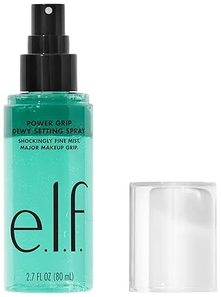 e.l.f. Power Grip Dewy Setting Spray is a bi-phase mist that “grips” makeup for long wear with a hydrated, dewy finish, activated by shaking to combine its water and oil phases.