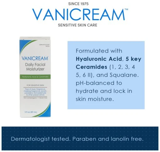Vanicream fragrance-free daily face moisturizer is a lightweight, gluten-free moisturizer for sensitive skin